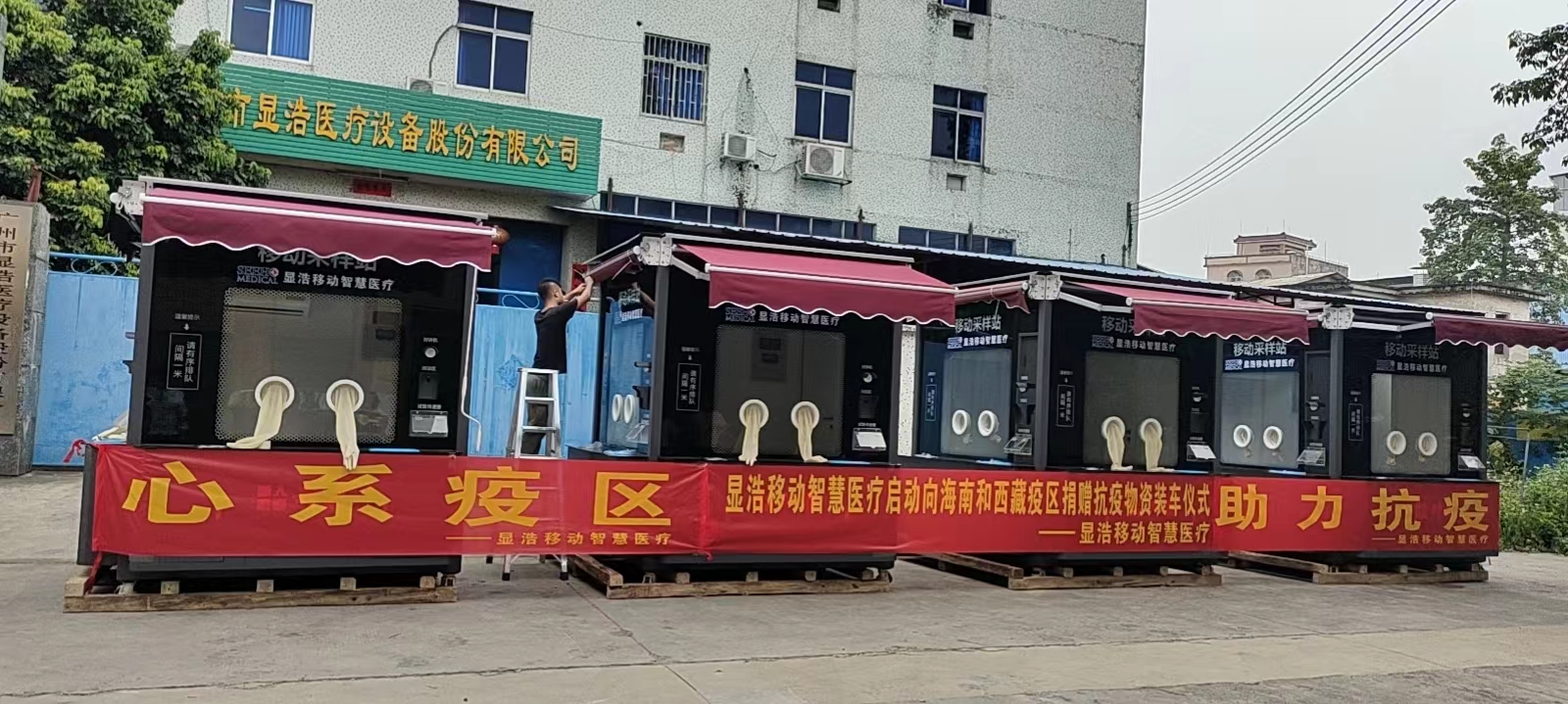 湖北顯浩醫(yī)療裝備科技有限公司營運總監(jiān)蔣存金介紹,此次捐贈的核酸檢測亭是公司員工加班加點趕制,配備有自動對講、測溫等裝備,安裝新風(fēng)空調(diào)系統(tǒng),可以保證檢測亭內(nèi)工作環(huán)境的零污染。在完成核酸檢測工作之后,它還可以轉(zhuǎn)化為執(zhí)法亭、早餐售賣點、休息室等形態(tài),繼續(xù)發(fā)揮功用