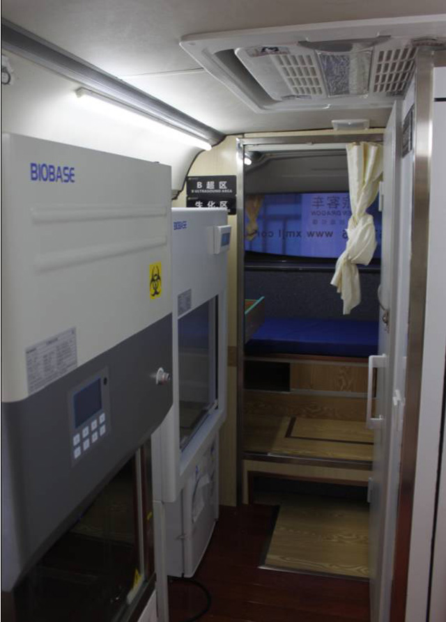 在正規(guī)的體檢醫(yī)療車上,同時(shí)配備有心電圖檢查儀、檢查床、冰柜、空調(diào)和紫外線消毒燈等一系列正常體檢和急救所需的所有設(shè)備。因?yàn)槠淞鲃有詮?qiáng),在下鄉(xiāng)醫(yī)療活動中起到了很關(guān)鍵的作用,對于某些經(jīng)濟(jì)不發(fā)達(dá)的地區(qū),醫(yī)療條件較差,相關(guān)衛(wèi)生部門可以組織免費(fèi)體檢一類的活動,大大方便了那些沒有錢進(jìn)行定期體檢的人。車上有B超檢測器、胸透等儀器,孕婦也能做些保險(xiǎn)性的檢查。體檢醫(yī)療車分為幾種,分別為全科體檢車、婦女健康管理車和DR體檢車。比較而言,前者是一把抓,中間一個(gè)是分特定對象的,而最后的是搭配有DR設(shè)備的體檢車。