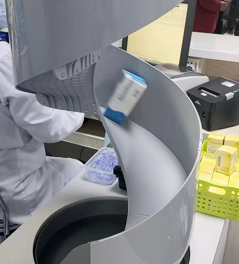 隨著人工智能的發(fā)展,以質(zhì)量為核心、以病人為中心”的服務(wù)理念。提高醫(yī)療服務(wù)質(zhì)量,改善群眾就醫(yī)體驗(yàn),醫(yī)院都紛紛上線智慧藥房。發(fā)藥機(jī)投入使用讓病患享受到更加便捷的藥學(xué)服務(wù)。發(fā)藥機(jī)從外形看,就像是大型自動(dòng)售貨機(jī),解決了人工發(fā)藥取藥調(diào)配差錯(cuò)率高、沒有過程記錄環(huán)節(jié)、患者等待時(shí)間長等缺點(diǎn),緩解了高峰期配藥壓力。發(fā)藥機(jī)系統(tǒng)還會(huì)自動(dòng)鎖定過期藥品功能強(qiáng)大,發(fā)藥機(jī)內(nèi)部溫度恒溫,有藥品缺藥的提示功能,系統(tǒng)就會(huì)按照處方的內(nèi)容自動(dòng)調(diào)配藥品,可以及時(shí)的補(bǔ)充藥品。實(shí)現(xiàn)實(shí)時(shí)監(jiān)控。這樣讓病患可以得到用藥需求。藥品充足就不會(huì)讓病人久等。最后把調(diào)配好的藥品通過傳輸帶輸送到發(fā)藥窗口。提高了效率將簡單繁重機(jī)械重復(fù)式的工作交給智能發(fā)藥機(jī)完成。配合具有108存儲(chǔ)位的智能調(diào)配機(jī)和78種藥品拆零的分包機(jī),系統(tǒng)全天能達(dá)到6000張?zhí)幏教幚砟芰?,確實(shí)能緩解高峰期配藥壓力。真正實(shí)現(xiàn)了藥品調(diào)配的全流程智能化操作。為患者的用藥安全提供了有力的保障。