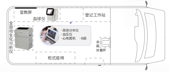便捷、周全、高效的上門(mén)體檢服務(wù),智慧體檢車(chē)就能把健康醫(yī)療送到家門(mén)口,定制化可根據(jù)不同需求進(jìn)行個(gè)性化定制改裝自動(dòng)化數(shù)據(jù)自動(dòng)采集,記錄,生成規(guī)范檢驗(yàn)數(shù)據(jù)庫(kù)標(biāo)準(zhǔn)化國(guó)家公 衛(wèi)服務(wù)標(biāo)準(zhǔn)常規(guī)病例隨訪(fǎng)標(biāo)準(zhǔn)化操作流程智能化智 能健康管理系統(tǒng)智能風(fēng)險(xiǎn)評(píng)估醫(yī)學(xué)知識(shí)庫(kù)。血壓、血糖、B超、心電圖檢查。享受優(yōu)質(zhì)的體檢醫(yī)療服務(wù)。通過(guò)檢查后身體有問(wèn)題就要早治療早預(yù)防。20多分鐘就可以完成體檢項(xiàng)目,省時(shí)省力。農(nóng)民得到了實(shí)惠,都花錢(qián)少了。體檢方便了。推動(dòng)了公共衛(wèi)生服務(wù)的均等化。隨著醫(yī)療服務(wù)的不斷提高,體檢車(chē)就可以生化檢測(cè),血液檢測(cè),大大的節(jié)省了檢測(cè)報(bào)告時(shí)間??刂埔恍┘膊 sw檢車(chē),可根據(jù)不同需求進(jìn)行個(gè)性化定制改裝。數(shù)據(jù)自動(dòng)采集、記錄,生成規(guī)范檢驗(yàn)數(shù)據(jù)庫(kù)。并依據(jù)國(guó)家公衛(wèi)服務(wù)標(biāo)準(zhǔn)常規(guī)病例隨訪(fǎng)標(biāo)準(zhǔn)化操作流程,體檢車(chē)專(zhuān)用設(shè)備不受環(huán)境溫度的影響,隨開(kāi)隨用,能適應(yīng)春、夏、秋、冬四季以及高寒、高原、炎熱等惡劣環(huán)境。