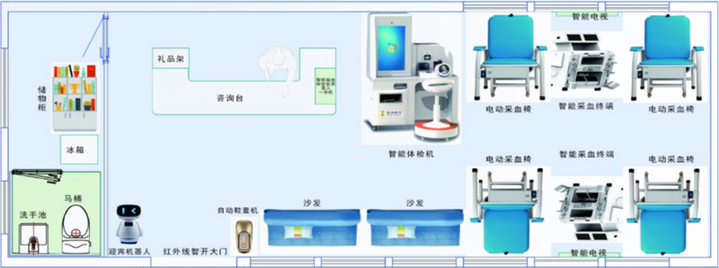 顯浩智能獻(xiàn)血屋可提供主體結(jié)構(gòu)、專業(yè)智能醫(yī)療設(shè)備、配套軟裝等全套解決方案,覆蓋設(shè)計(jì)、生產(chǎn)、安裝全流程作業(yè),外觀設(shè)計(jì)新穎大氣,內(nèi)部寬敞明亮,布局規(guī)范合理,環(huán)境舒適溫馨,并可根據(jù)具體個(gè)性化需求進(jìn)行調(diào)整。智能采血設(shè)備配備信息錄入體檢一體機(jī)、智能采血終端等,極大解放人力,同時(shí)方便護(hù)士操作、保證采血質(zhì)量。
