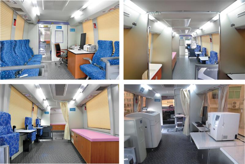 專業(yè)的流動獻(xiàn)血車廠家會將現(xiàn)代健康體檢理念融匯于整車研發(fā)過程,看似小小的獻(xiàn)血車實際所用到醫(yī)療設(shè)備一應(yīng)俱全,大部分流動的獻(xiàn)血車和采血車都有空調(diào)、發(fā)電機(jī)、熱合機(jī)臺、恒溫保鮮冰柜、休息床、工作臺、工作椅、工作桌、立式飲水機(jī)、烘手機(jī)、采血冰箱 30米電纜軸、配電柜、采血椅、采血臺、紫外線消毒燈、 污物桶、滅火器、排風(fēng)系統(tǒng)等。這種移動的獻(xiàn)血車和體檢車類似,是一個移動體檢中心可用于現(xiàn)場體檢和采血。